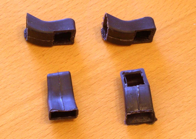 Moto Morini Footpeg RubbersThese were stock on the old singles and the 3*. Reproduced from a NOS provided by Luzzi Cesare. Currently in stock. Price: $30.00 per pair, US shipping included. Reverse view.